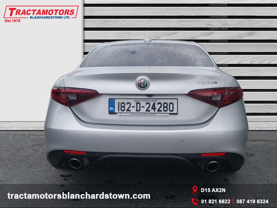 HIGH SPEC GIULIA SPECIALE WITH ELECTRIC LEATHER SPORT SEATS, INTEGRATED BLUETOOTH AUDIO, CLIMATE CONTROL, CRUISE CONTROL, PRIVACY GLASS AND MUCH MORE. FOR MORE INFORMATION PLEASE CONTACT OUR SALES TEA ... M ON 018216622 Air Conditioning, Central Locking, Immaculate condition, Electric Windows, Airbag, Alarm, Alloy Wheels, Cruise Control, Electric Mirrors, Electric Seats, Fog Lamps, Immobiliser, Full Leather, Heated Seats, Automatic Wipers, Automatic Lights, Centre Armrest, Multi-function steering wheel, Climate Control, Satellite Navigation, Traction Control, Metallic Paint, Multiple Air Bags, Anti-Theft System, Parking Sensors, Bluetooth, Remote Central Locking, EBD, Isofix, Active Safety Braking / City Brake / Collision Alert, Heated Steering Wheel, Stop/Start Button, Daytime Running Lights, 2 Keys, External Devices Connectivity, Cup holders, Remote boot/hatch/rear door release, Stability control
