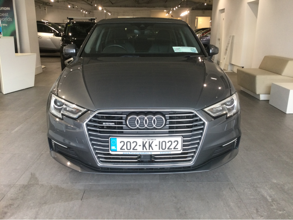 Audi A3 E Tron Plug In Hybrid Finished In Steel Grey With Black Leather Now Available Here In Fairview Motors. Call Our Sales Team Now On 01 8332241 TO Book Your Test Drive. Finance Arranged. Air Cond ... itioning, Central Locking, Electric Windows, Airbag, Alloy Wheels, Cruise Control, Electric Mirrors, Fog Lamps, Immobiliser, Rear Spoiler, Full Leather, Centre Armrest, Multi-function steering wheel, Satellite Navigation, Traction Control, Metallic Paint, Multiple Air Bags, Anti-Theft System, Parking Sensors, Bluetooth, Remote Central Locking, EBD, Folding rear seats, Isofix, Hill holder, Front Parking Sensors, Active Safety Braking / City Brake / Collision Alert, Stop/Start Button, Daytime Running Lights, 2 Keys, External Devices Connectivity, Cup holders, Remote boot/hatch/rear door release, Stability control
