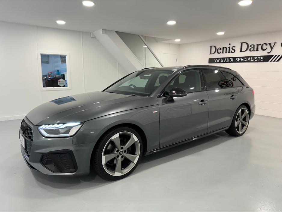 WWW.DENISDARCYCARS.IE VW/AUDI SPECIALISTS. 212 AUDI A4 AVANT BLACK EDITION 2.0TDI IN DAYTONA GREY. SPEC INCLUDES, 19'' ALLOYS, BLACK PACK (MIRRORS, FRONT GRILL, BADGE, ROOF RAILS) PRIVACY GLASS, AUTO ... TAILGATE, LED LIGHTS, HEATED HALF LEATHER S LINE SEATS, FLAT BOTTOM S LINE MULTIFUNCTION STEERING WHEEL,ARMREST, AUTO LIGHTS/WIPERS, BANG & OLUFSEN SOUND SYSTEM, BLACK DASH INLAYS, FOLDING MIRRORS, PARKING SENSORS, VIRTUAL DASH CLOCKS, CRUISE CONTROL, PADDLE SHIFT, REVERSING 360 DEGREE CAMERAS, AMBIENT INTERIOR LIGHTING MULTICOLOUR, KEYLESS, AUDI DRIVE SELECT, APPLE CARPLAY ANDROID AUTO, SAT NAV, BLUETOOTH MEDIA, TWO KEYS, SERVICE HISTORY. ONE YEAR WARRANTY. WE ARE LOCATED JUST OFF THE M3 MOTORWAY EXIT 9, 20 MINS FROM DUBLIN.