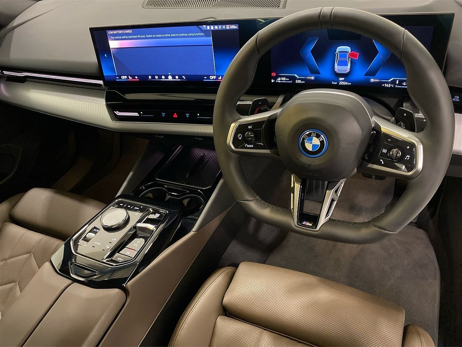arging cable Professional (Mode 3), eDrive Exterior Sound, BMW IconicSounds Electric, Dark Silver M accent combined with Alumi, Front Lumbar Support, Heated front seats, Parking Assistant, BMW Online Services, Smartphone Integration, Connected Package Pro, Storage for wireless charging, Personal eSIM, DAB Radio, Harman/Kardon Surround Sound Audio, High-gloss Shadowline Exterior Trim, Anthracite Headlining, COC additional contents, Specific additional contents in M Sport, M Sport exterior parts, M Sport interior parts, Control E