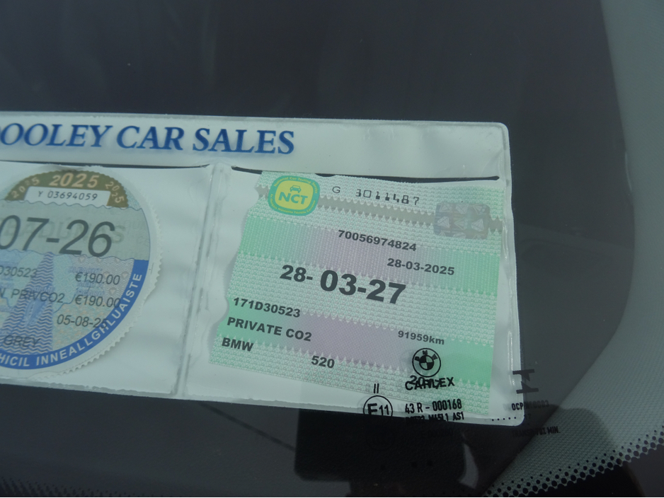 "" LOW MILEAGE" 171 BMW 520 d ... automatic .... 2.0 turbo diesel ...190 brake horse power .... comes fully serviced and warranty ... Extras inc alloys ... fogs ... metallic paint ...privacy glass ... ... front and rear sensors .... black leather seats ....heated front seats ... iso fix connections ... lumber support ...electric handbrake .... bluetooth voice control ... push button stop start ..abs brakes .... cruise control ... climate control ..... auto wipers ... auto wipers .... sat nav ... electric windows ... electric mirrors .... Central Locking, Electric Windows, Airbag, Cruise Control, Centre Armrest, Multi-function steering wheel, Climate Control, Satellite Navigation, Traction Control, Metallic Paint, Anti-Theft System, Parking Sensors, Bluetooth, EBD, Electronic handbrake, Isofix, Active Safety Braking / City Brake / Collision Alert, Stop/Start Button, Touch Screen Media Control, 2 Keys, External Devices Connectivity, Cup holders, Remote boot/hatch/rear door release, Stability control