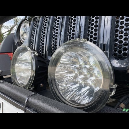 All steel bull bar on front with extra off-road lights.