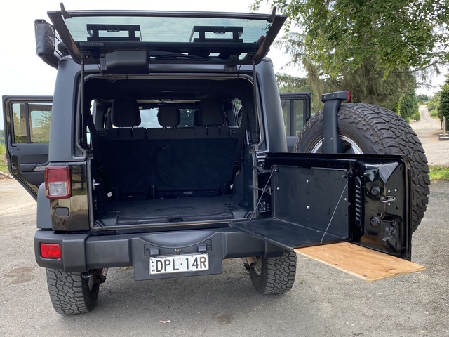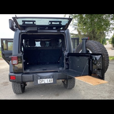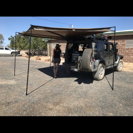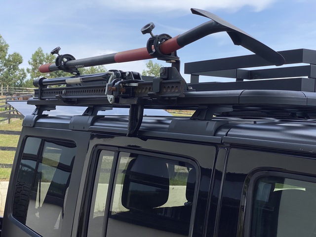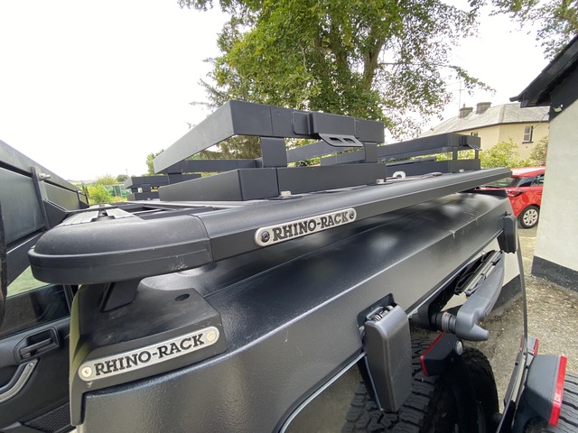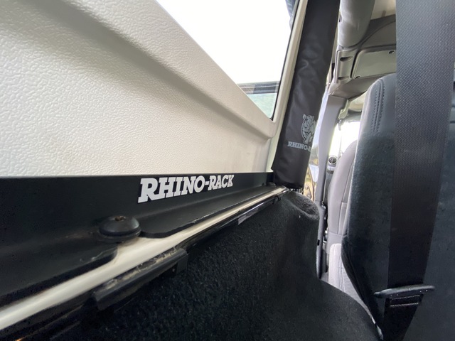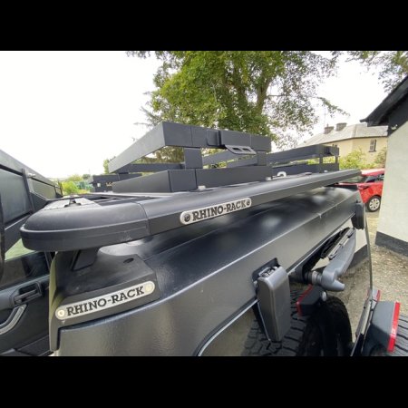 - Rhino Rack platform roof rack, shovel and jack bracket, attached sunshade made by Rhino Rack that wraps around the entire vehicle, power inverter, tyre compressor and tailgate cooking shelf.