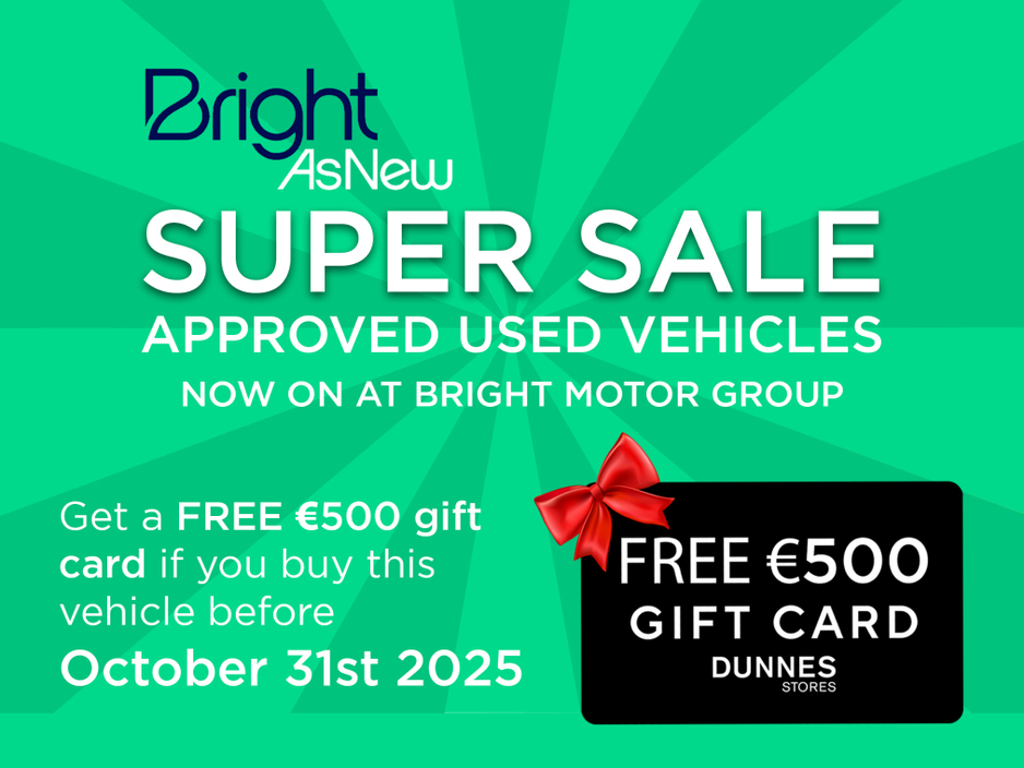 les Team to arrange for a test drive Bright Motor Group Navan Road (D15X336) is open Monday to Friday 9am to 6pm and Saturday 10am to 3pm, Sunday closed. Tel 01 868 9000.