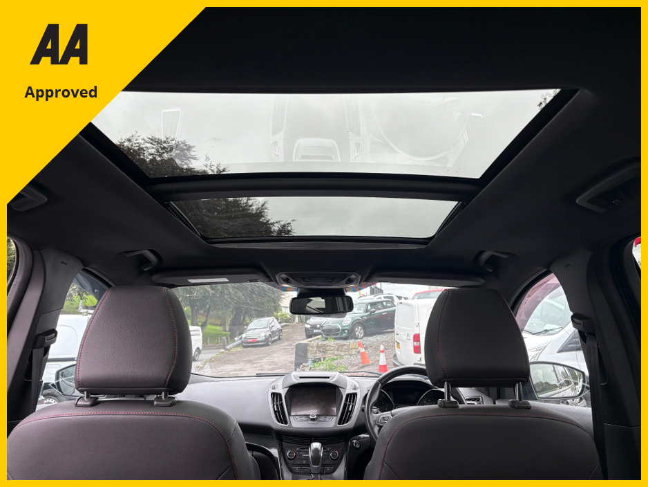 th its sporty ST-Line X styling, premium alloy wheels, and stunning panoramic sunroof that floods the cabin with natural light. The powerful yet efficient TDCi engine paired with smooth automatic transmission and intelligent 4x4 capability ensures confident driving in all conditions. Inside, enjoy a refined interior with part-leather sports seats, advanced infotainment, dual-zone climate control, and a spacious layout perfect for family or adventure. This Kuga offers the ideal balance of comfort, technology, and versatilityready to hit the road in style.