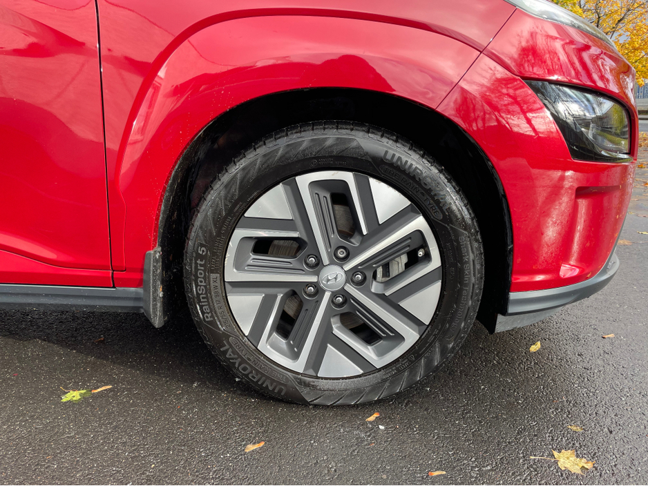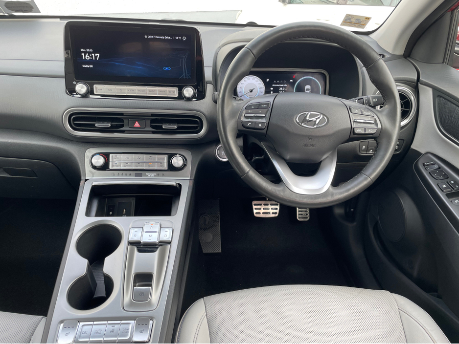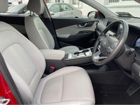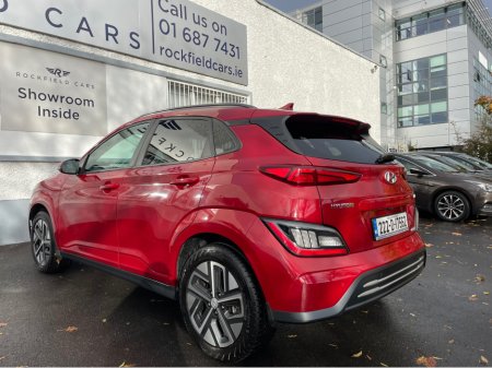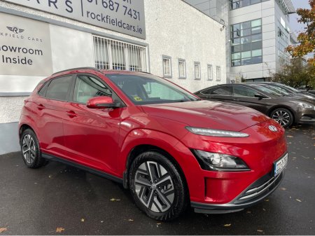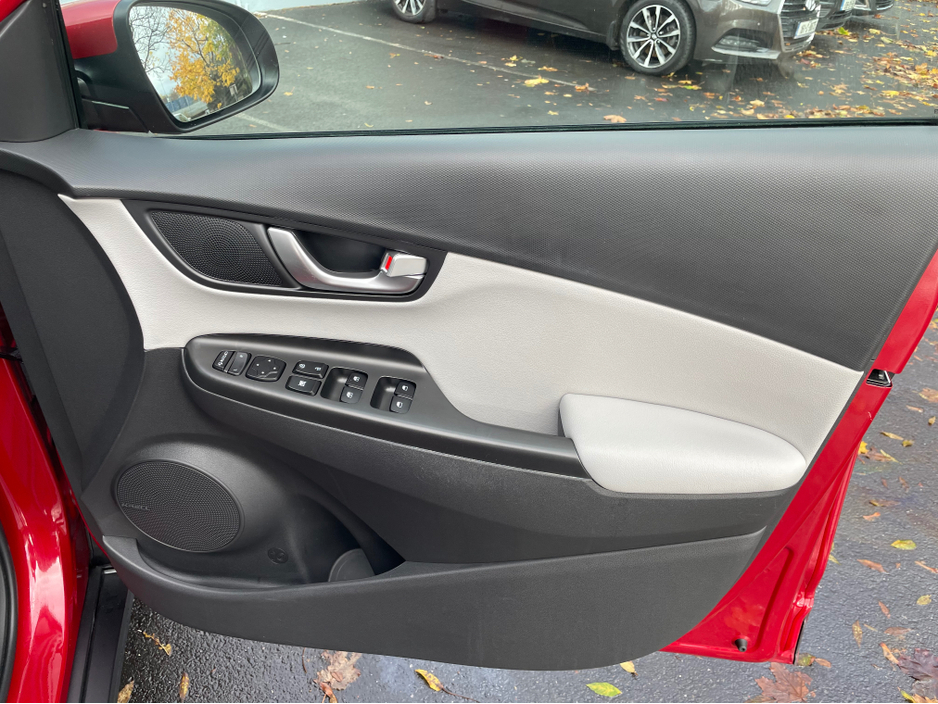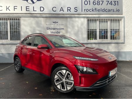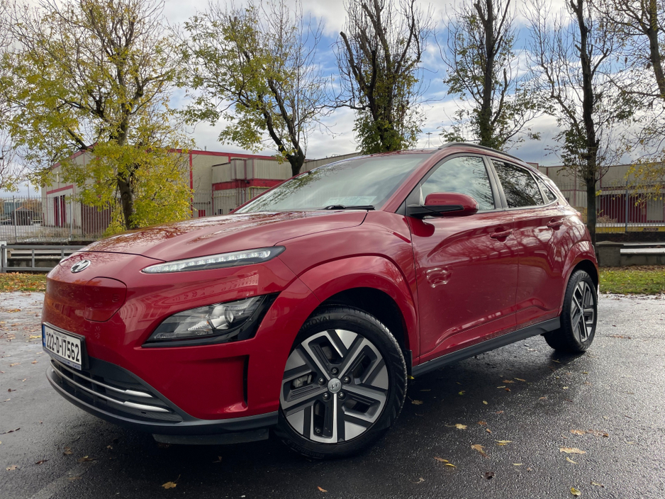 SOH 97.6% SEE PICTURE NO. 2 -ELECTRIC KONA - HYUNDAI KONA - FULLY ELECTRIC AUTOMATIC - 64KW BIGGER BATTERY - FULL SERVICE HISTORY - JUST SERVICED - DARK RED EXTERIOR WITH CONTRASTING LIGHT GREY LEATHE ... R INTERIOR - ELECTRIC FOLDING MIRRORS - PARK ASSIST WITH REVERSING CAMERA - APPLE/ANDROID PLAY - SAT NAV - LEATHER MULTI FUNCTIONAL STEERING - USB PORT - BLUETOOTH PHONE - DUAL CLIMATE CONTROL - AIR CONDITIONING - CD PLAYER - ALL ELECTRIC WINDOWS AND MIRRORS - LOTS MORE EXTRAS - ISOFIX - REMOTE CENTRAL LOCKING - MULTIPLE AIR BAGS - WARRANTY PROVIDED - FINANCE ARRANGED WWW. ROCKFIELDCARS. IE - IF YOU REQUIRE ANY FURTHER INFORMATION RELATING TO THIS VEHICLE OR TO ARRANGE A TEST DRIVE PHONE RICHARD ON 087-2888503 OR ON 01-6877431 OR EMAIL SALES@ROCKFIELDCARS.IE Central Locking, Electric Windows, Airbag, Fog Lamps, Rear Spoiler, Privacy Glass, Centre Armrest, Multi-function steering wheel, Roof Rails, Satellite Navigation, Traction Control, Parking Sensors, Bluetooth, EBD, Isofix, Active Safety Braking / City Brake / Collision Alert, External Devices Connectivity, Cup holders, Remote boot/hatch/rear door release, Stability control
