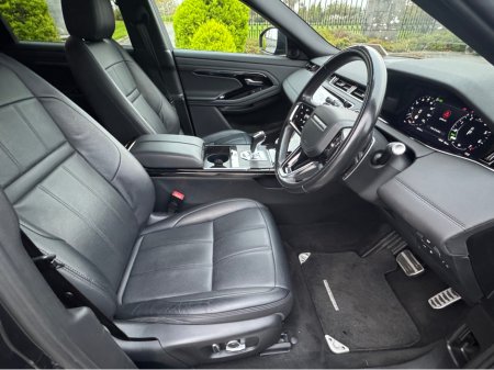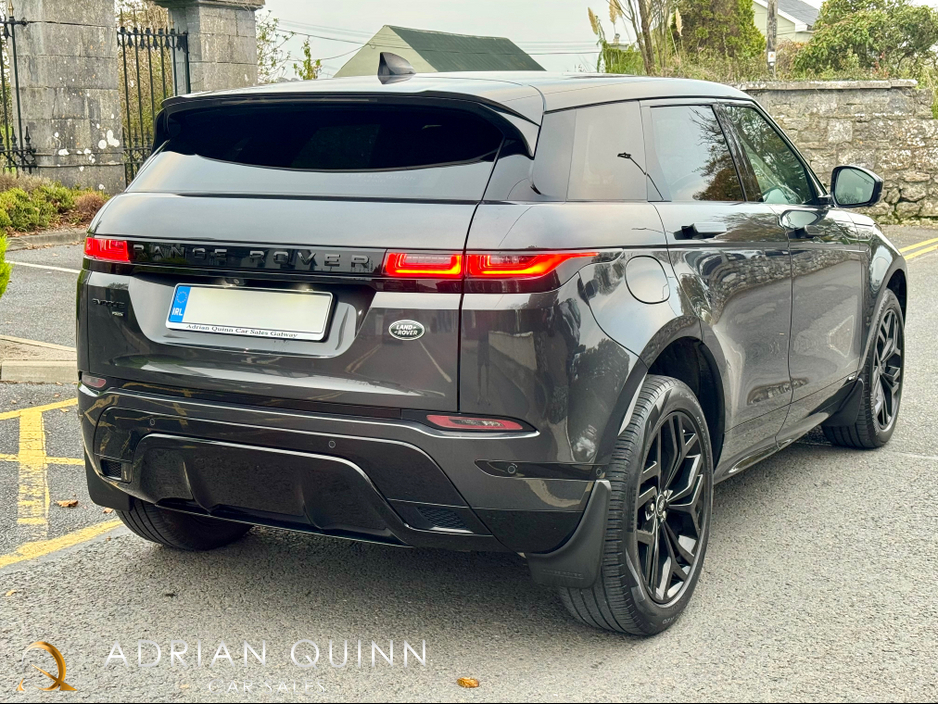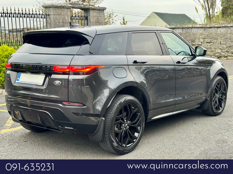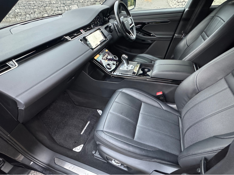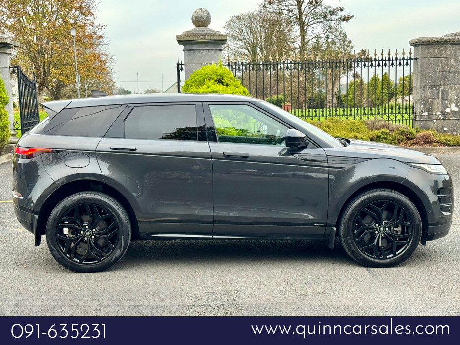 2021 (211) RANGE ROVER EVOQUE P300e R-DYNAMIC SE BLACK PACK AUTO 300 BHP...UPGRADED CARPATHIAN GREY PREMIUM METALLIC...WINDSOR EBONY LEATHER INTERIOR WITH EBONY CARPETS AND EBONY TRIM...GRAND BLACK IN ... TERIOR TRIM...FULL BLACK EXTERIOR STYLING PACK INC BADGES AND TRIM...20 INCH UPGRADE HIGH GLOSS BLACK ALLOYS...PRIVACT GLASS...MERIDIAN SURROUND SOUND SYSTEM...KEYLESS START...REVERSE CAMERA INC 360 DEGREE PARKING AID...FULLY ELECTRIC MEMORY FRONT SEATS...HEATED FRONT SEATS...ELECTRIC LUMBAR SUPPORT...AMBIENT INTERIOR CABIN LIGHTING...AUTO BOOTLID WITH GESTURE CONTROL...LANE KEEP ASSIST...BLIND SPOT ASSIST...CRUISE CONTROL...APPLE CAR PLAY...ANDOROID AUTO...LANDROVER PIVI PROHDD SATELLITE NAVIGATION SYSTEM WITH TMC AND DNG...MUSIC HARD DRIVE...INTERNET...LANDROVER INCONTROL CONNECT PACK...WI-FI--APPS INTERFACE...DAB RADIO...LANDROVER BLUETOOTH PHONE SYSTEM...VOICE CONTROL...FULL LED HEADLIGHTS WITH LED SIGNATURE LIGHTING...ADAPTIVE HEADLIGHTS...REVERSE DETAECTION MONITOR...HIGH BEAM ASSIST...AUTO BOOTLID WITH GESTURE CONTROL...FRONT AND REAR PARKING SENSORS WITH VISUAL DISPLAY...LEATHER MULTI FUNCTION STEERING WHEEL...FINANCE ARRANGED...