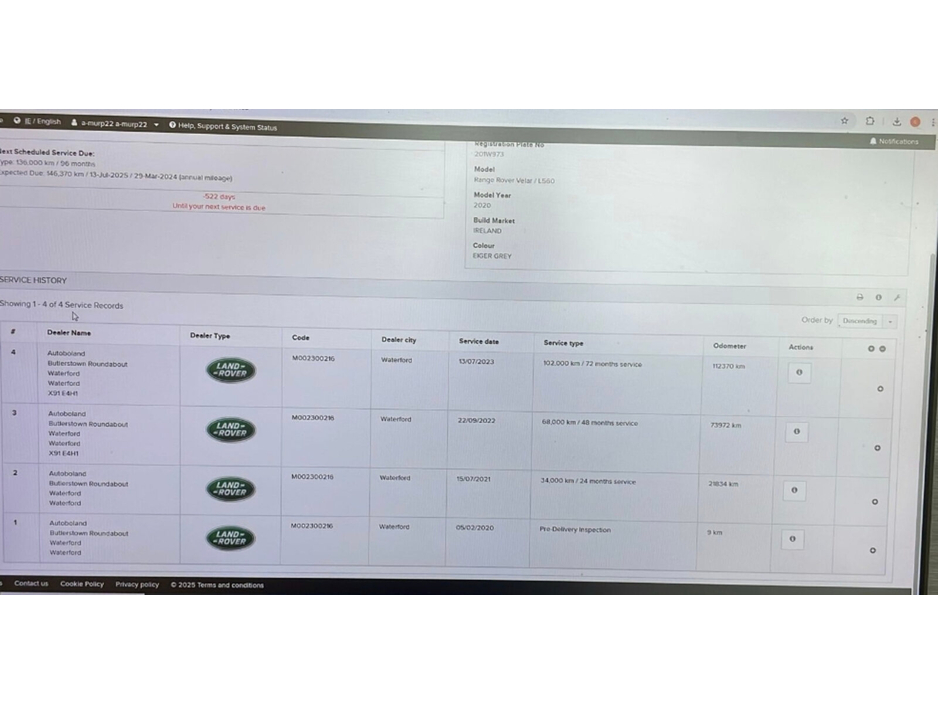 RANGE ROVER SERVICE HISTORY