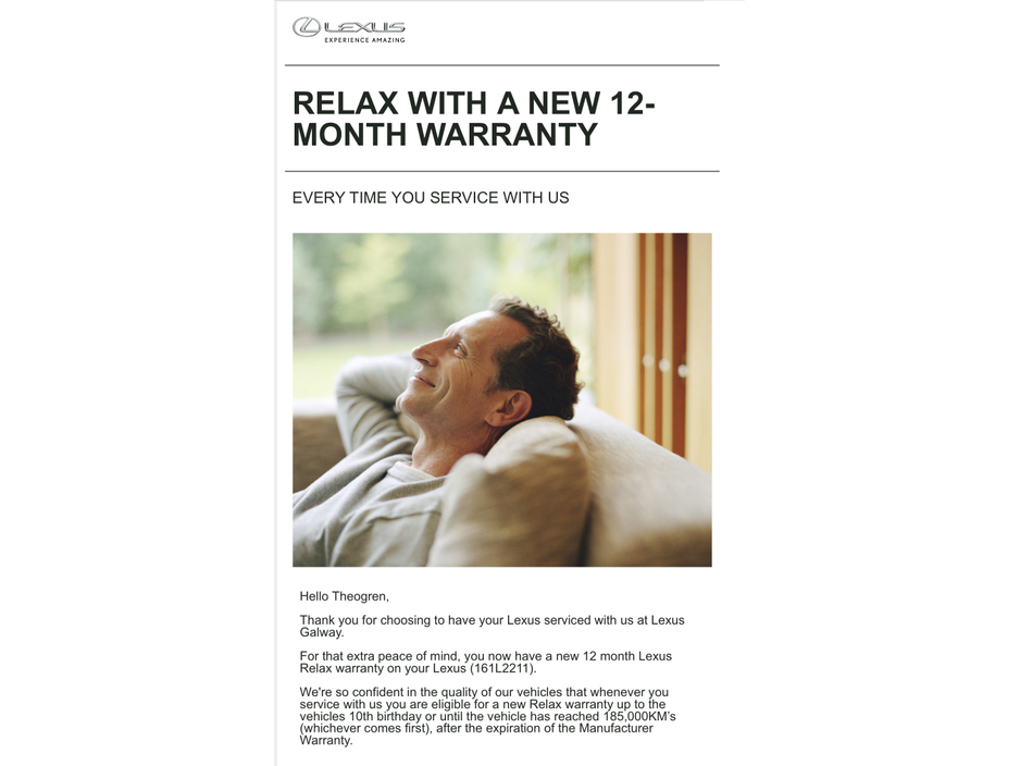 -12 Months Lexus Manufacturer Warray