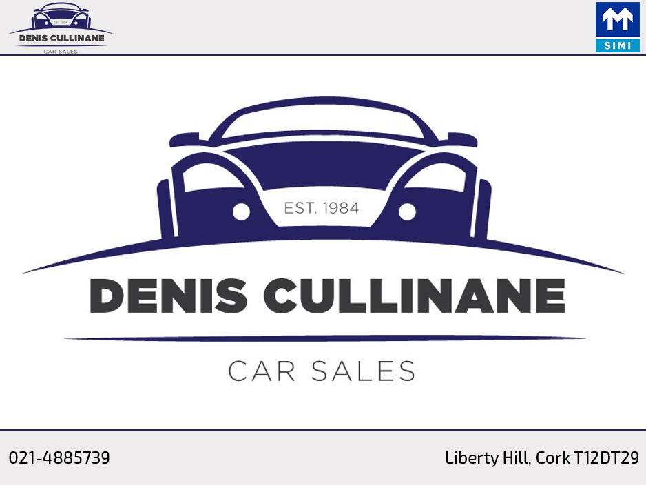 AY FINANCE AVAILABLE * As an authorised credit intermediary for a number of institutions we can arrange competitive finance in a matter of hours. All of our cars come professionally valeted, fully serviced and with a comprehensive warranty. Trade in considered. Call us today for more info and to arrange a test drive. Opening hours Mon-Fri 9.0-05.30 & Sat 09.30-13.00. BANK HOLIDAY WEEKENDS - CLOSED. Denis Cullinane Car Sales has been selling quality cars from our premises in Ballinhassig since 1984. We are an SIMI approved member garage. Central Locking, Electric Windows, Airbag, Rear Spoiler, Centre Armrest, Multi-function steering wheel, Traction Control, Metallic Paint, Parking Sensors, Bluetooth, EBD, Isofix, Active Safety Braking / City Brake / Collision Alert, Stop/Start Button, External Devices Connectivity, Cup holders, Remote boot/hatch/rear door release, Stability control