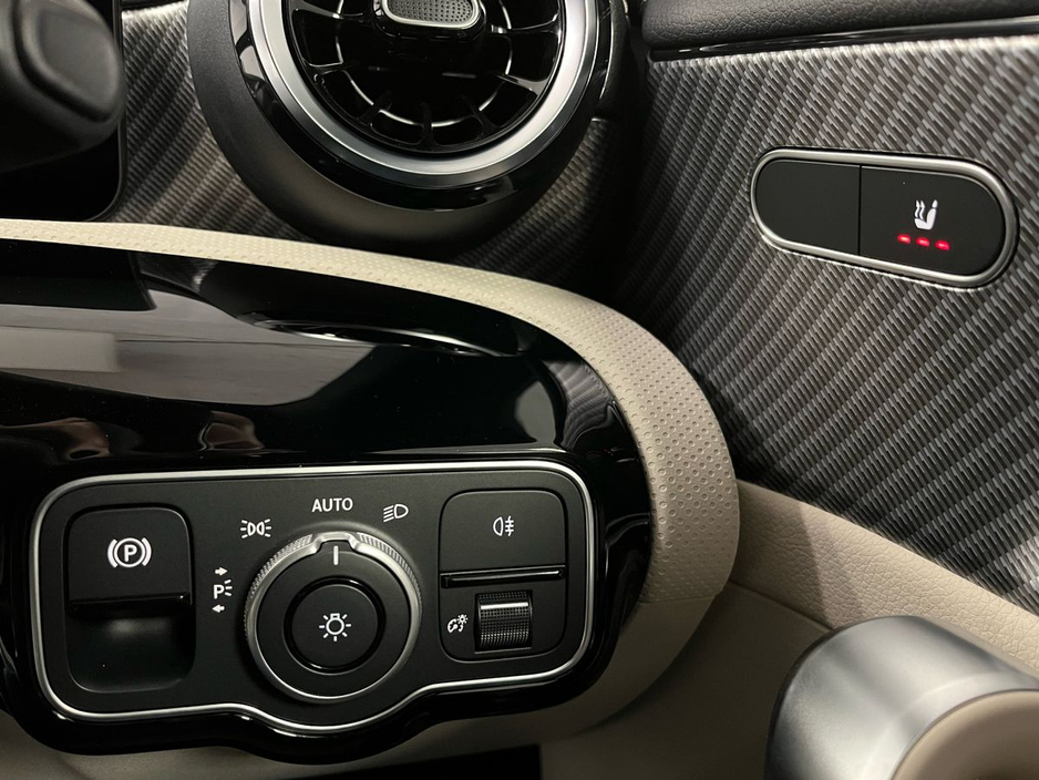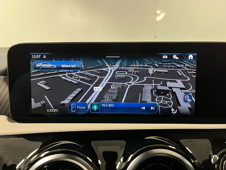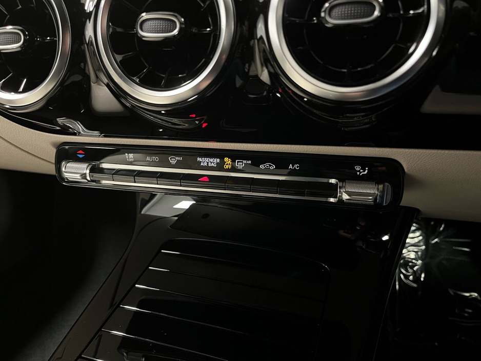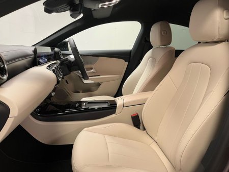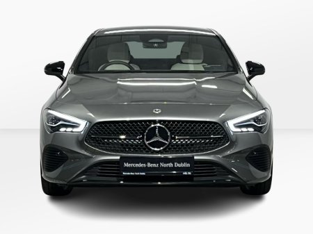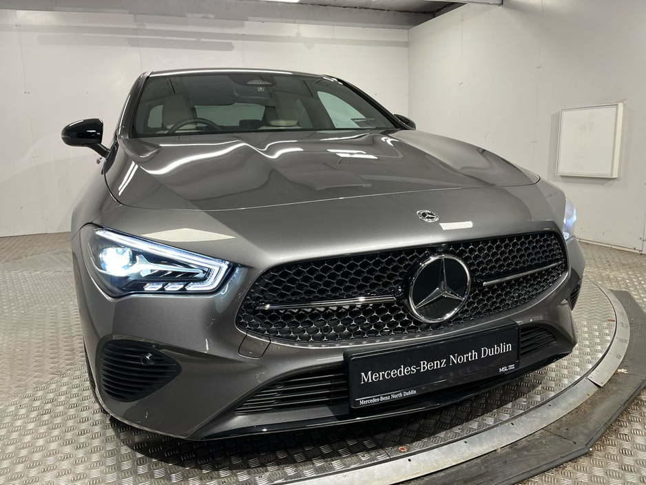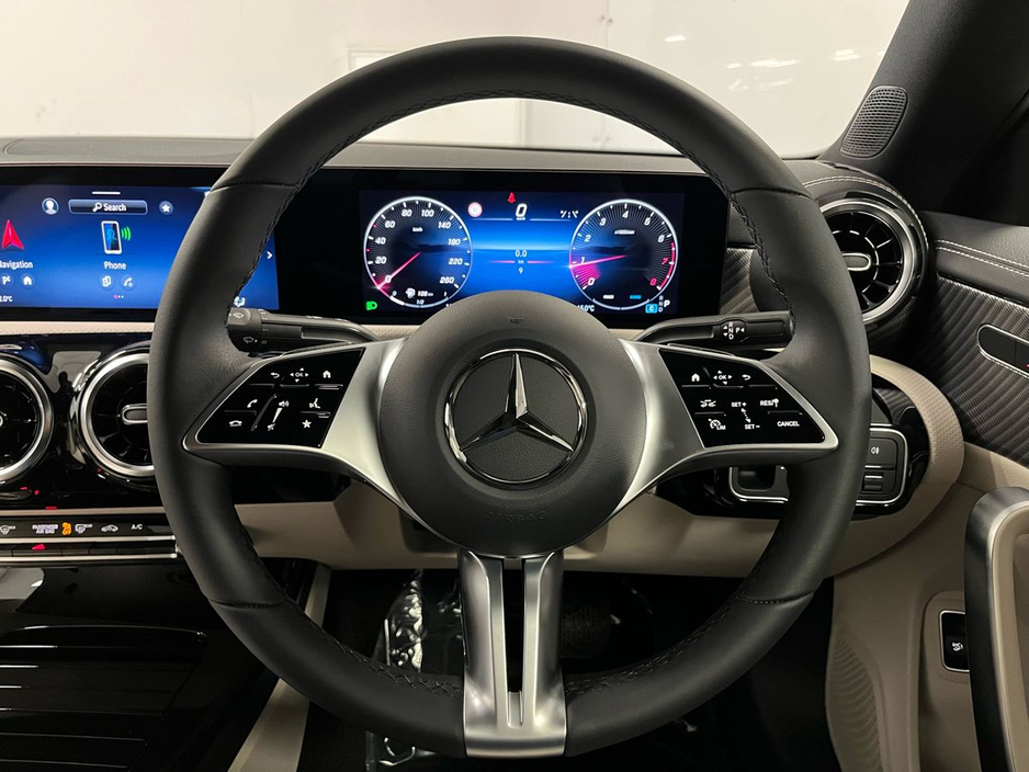 n/Progressive package and complemented by the Night Package, this model features striking 18” 10-spoke alloy wheels, high-gloss black exterior accents, and privacy glass for a sportier aesthetic. Inside, comfort and innovation combine with heated front seats, wireless phone charging, lumbar support, and the Seat Comfort Package. Technology highlights include the MBUX Navigation Premium system, digital instrument display, smartphone integration (Apple CarPlay & Android Auto), and a central touchscreen. The CLA also comes with Ambient Lighting and the Mirror Package with folding mirrors for added convenience. Safety features include Active Lane Keeping Assist, Collision Warning with active brake assist, Speed Sign Recognition, and a rear-view camera with Park Assist. Powered by a responsive 1.3L turbocharged petrol engine paired to a 7-speed automatic dual-clutch transmission, this front-wheel-drive coupé delivers a smooth and efficient driving experience. With its coupe silhouette, advanced driver assistance systems, and luxurious cabin, this CLA 180 is an excellent choice for those seeking sporty elegance and premium features in a compact package.