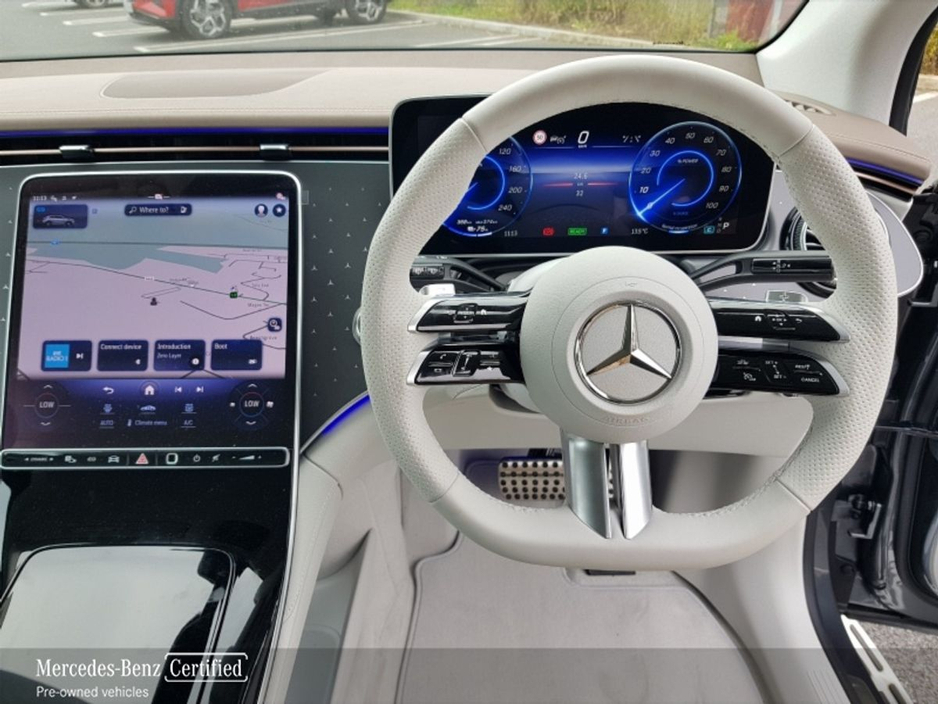 The Mercedes-Benz EQE SUV 300 delivers refined electric luxury in a sleek and medern package. Finished in Mountain Grey Metallic with a premium beige leather interior, this fully electric SUV offers c ...
