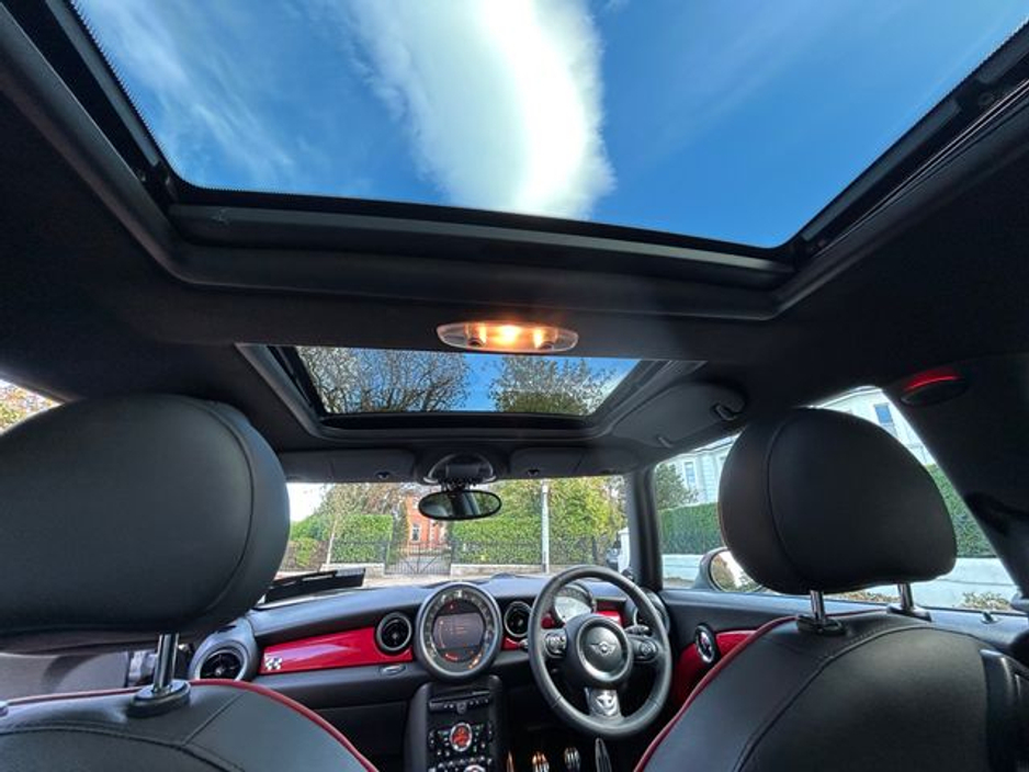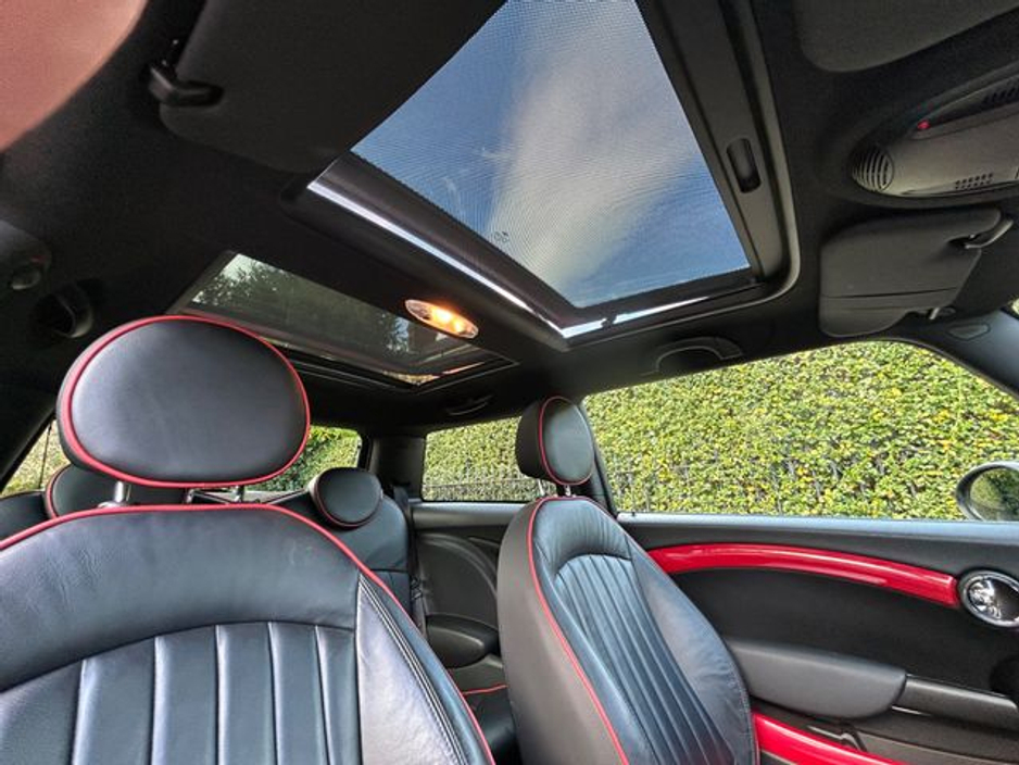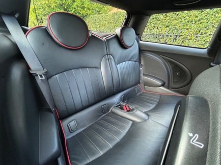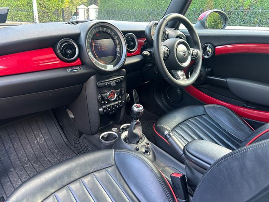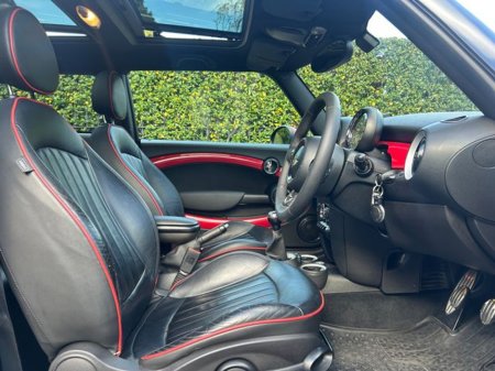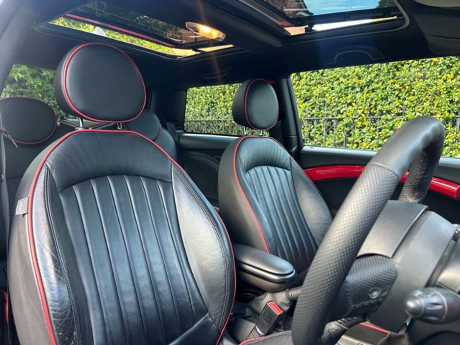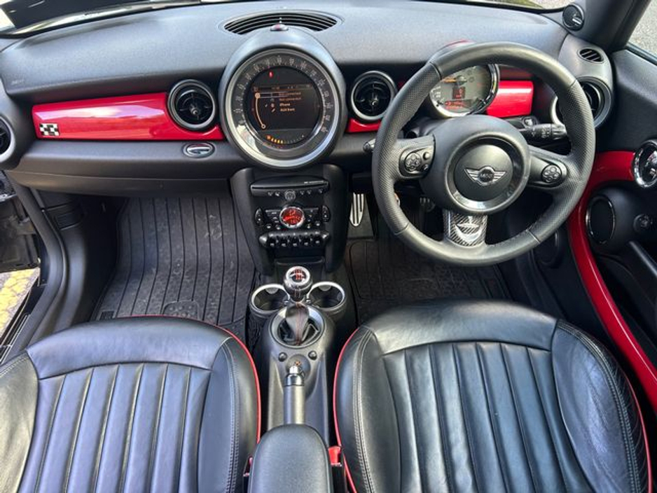 Interior is in immaculate condition, with full black leather sports seats with chilli outer finish, Mini JCW rubber matts and all netting intact in the boot.