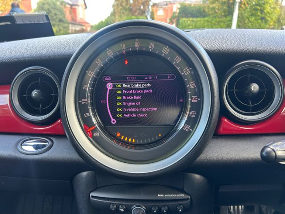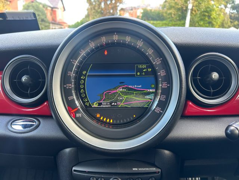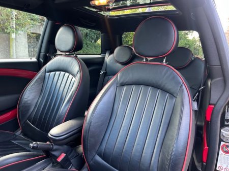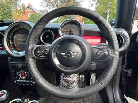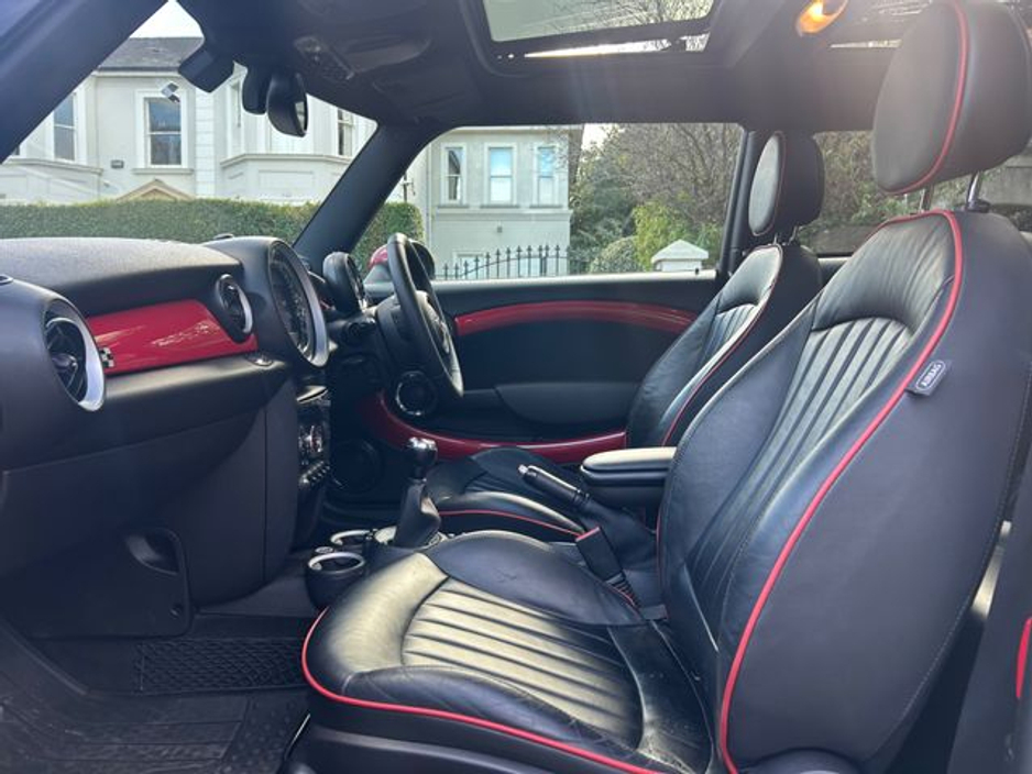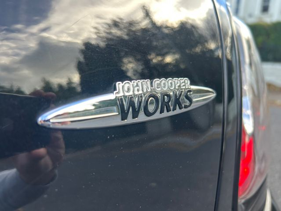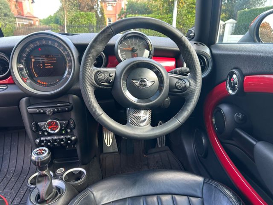 Interior is in immaculate condition, with full black leather sports seats with chilli outer finish, Mini JCW rubber matts and all netting intact in the boot.