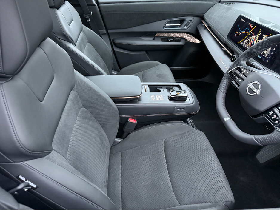 * EVOLVE spec includes adaptive sequential lights , openable sunroof , 10 speaker BOSE system , heated & cooled front seats , power sliding centre console , head up display , intelligent rear view mirror , Leather & Alcantara seats , Pro-Pilot & Pro-Pilot Park , Power tailgate , Dual 12.3" TFT Screens with Meter Display & Navigation . Wireless Apple Car Play , Android Auto , Nissan Connect Services , Wireless Phone Charger , Intelligent 360 Around View Monitor , Memory Intelligent Key ,