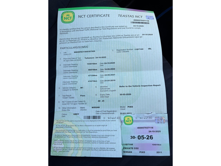 New NCT valid until 30/05/2026