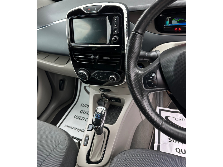 We at caroptions would like to present this stunning.RENAULT ZOE //COMES WITH CHARGER//JUST SERVICED// LONG N.C.T//Here at caroptions ,we dedicate ourselves in providing our customers with the most p ... rofessional service available,our cars come fully valeted , fully serviced,full nct ,full cartell motorcheck report, all our cars come with comprehensive warranty packages. Central Locking, Immaculate condition, Electric Windows, Airbag, Alarm, Alloy Wheels, Immobiliser, Privacy Glass, Luggage Cover, Multi-function steering wheel, Satellite Navigation, Traction Control, Parking Sensors, Trade in accepted, Bluetooth, Brand New Tyres, EBD, Isofix, Hill holder, Wireless Smartphone Control, Active Safety Braking / City Brake / Collision Alert, External Devices Connectivity, Cup holders, Stability control