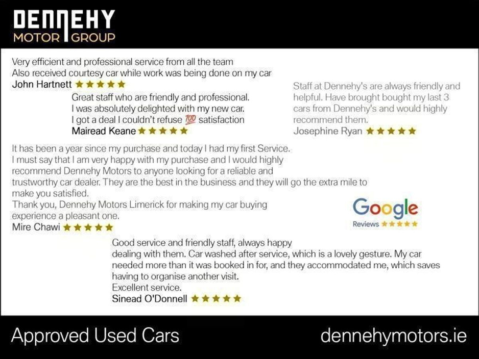 day, 9.30 - 4.00 Saturday. We can deliver on your additional ownership needs including parking sensors, tow bar, window tints etc. With competitive in-house finance, we can tailor a payment plan and assist you in protecting the value of your new car too. Your car will come fully history checked, with a Dennehy Motors warranty, professionally serviced, valeted and can be delivered nationwide. Choose multi award winning SIMI member Dennehy Motors for no jargon, no hassle, no confusion. *Per Week Based on 20% Deposit or Trade-in, Term 60 mths, Typical Rate of 9.9%