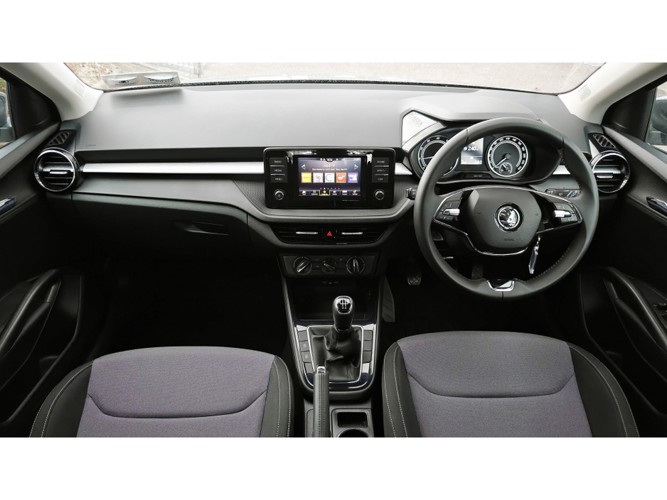 aturing 5 doors for easy access. The interior is equipped with amenities such as air conditioning, Bluetooth connectivity, and an audio player with touch screen. Safety features include ABS, eight airbags, lane departure warning system, and a multi-collision braking system. The Fabia also offers practical features like rear parking sensors, rain-sensing windscreen wipers, and a rigid cargo area cover. With its Euro NCAP 5-star safety rating and efficient performance, the Skoda Fabia is a reliable choice for city driving and daily commutes.