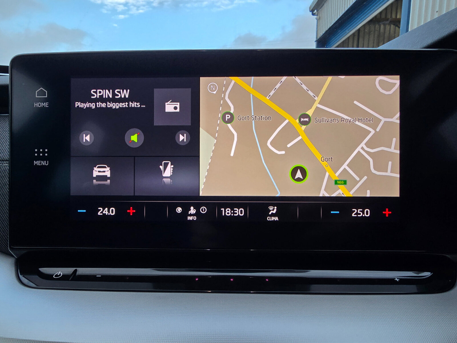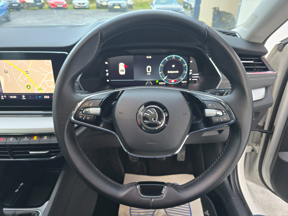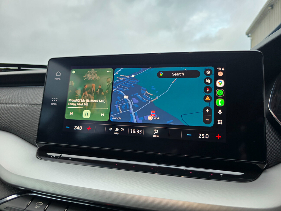 Air conditioning, Climate control, Dual zone climate control, Armrest, Keyless entry, Electric side mirrors, Electric windows, Electric handbrake, Lumbar support, Multi-function steering wheel, Rain sensor, Spare tyre, Android Auto, Apple CarPlay, Bluetooth, MP3 compatible, 12v power outlet, Radio, Touch screen display, USB connection (front), Wifi, Cruise control, Hill hold assist, Navigation system, Parking camera, Rear parking sensors, Remote boot release, Speed limiter, Start-stop system, Voice control, Digital instrument panel, Alloy wheels, Leather steering wheel, Auto lights (dusk sensor), Daytime running lights, LED headlights, ABS, Anti collision system, Emergency brake assist, Central locking, Driver-side airbag, Immobilizer, Isofix, Lane departure warning, Tyre pressure monitor, Passenger-side airbag, Seat belt warning, Side airbag, Stability control, Traction control