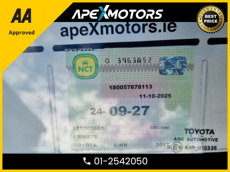 2017 Toyota C-HR FINANCE ARRANGED * ICON 115BHP 5DR * NEW NCT SEPT-27 * LOW LOW KMS * TOP-SPEC 1.2T ICON 5dr SUV * 4-STAMPS SERVICE HISTORY * AA APPROVED * 101 SAFETY CHECKLIST * IMMACULATE * HEATED SEATS * COLOUR REV