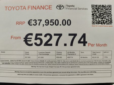 Welcome to Tadg Riordan Motors Ashbourne, We are a Toyota main dealer established since 1983, conveniently located just off the M2 motorway at the Ashbourne north exit. This car come supplied fully serviced & with a 12 month Toyota Plus Warranty or the balance of manufacturers warranty where applicable, Trade ins accepted & finance available. We have the full range of new Toyota car and commercials on display alongside a great range of quality assured used vehicles. Our sales department are open Mon / Fri 9am - 6pm and Sat 10am - 2pm contact us on (01) 8350084.
