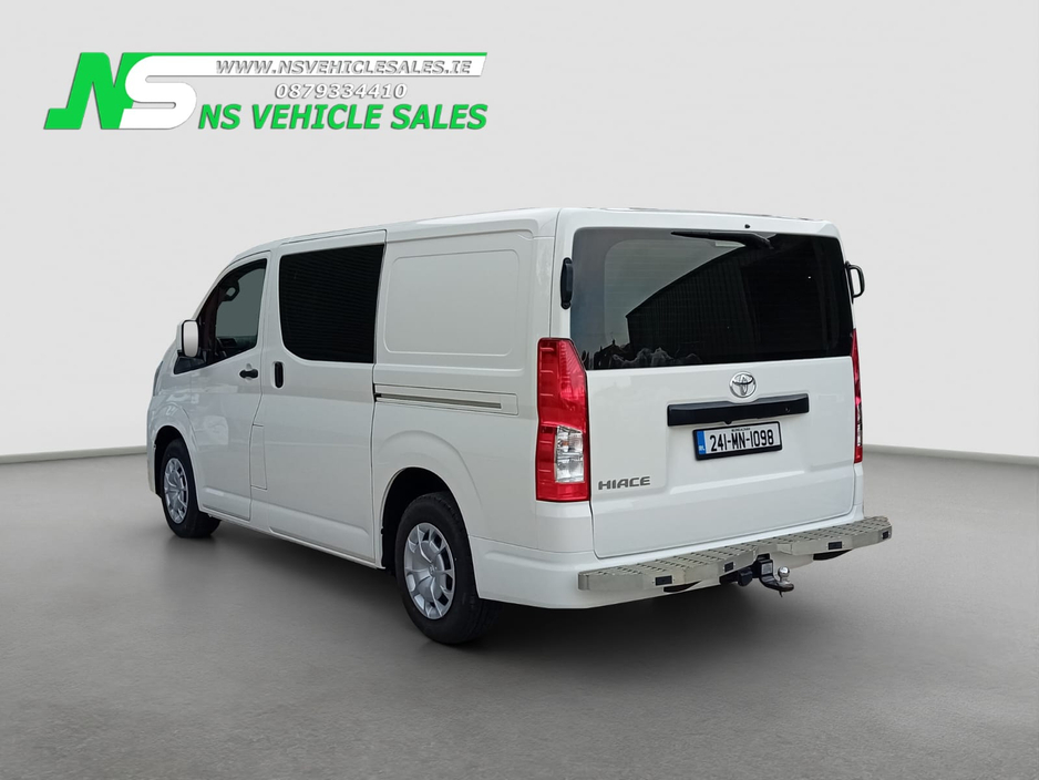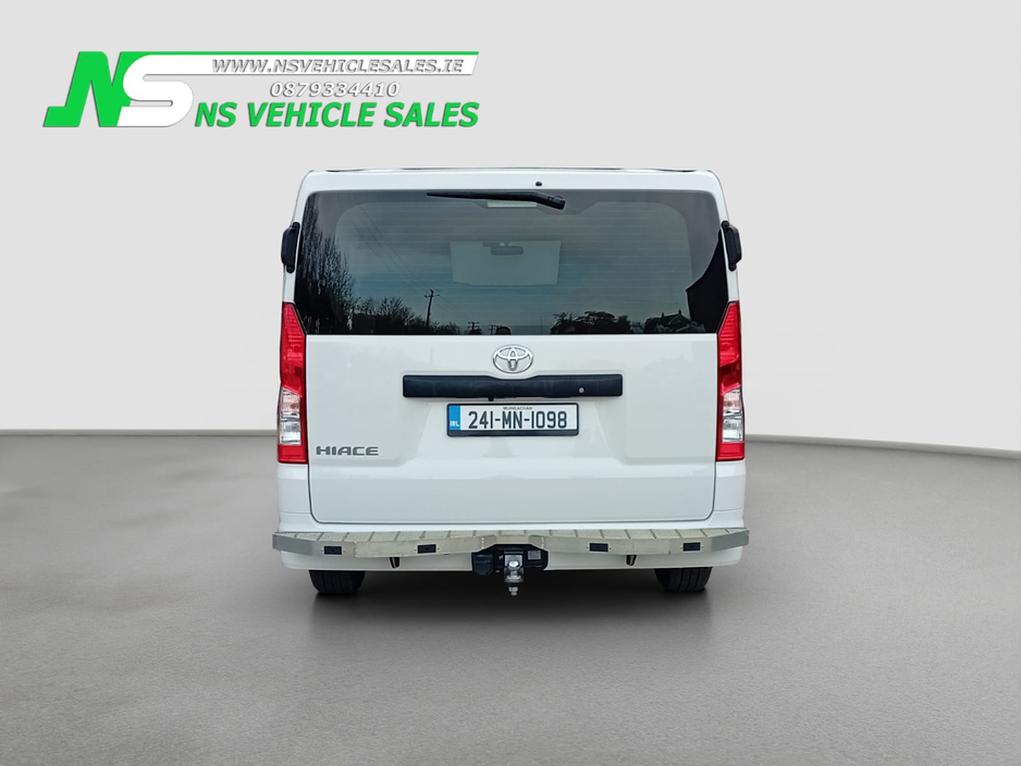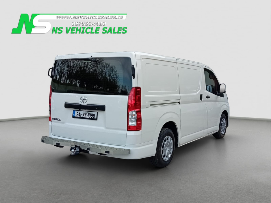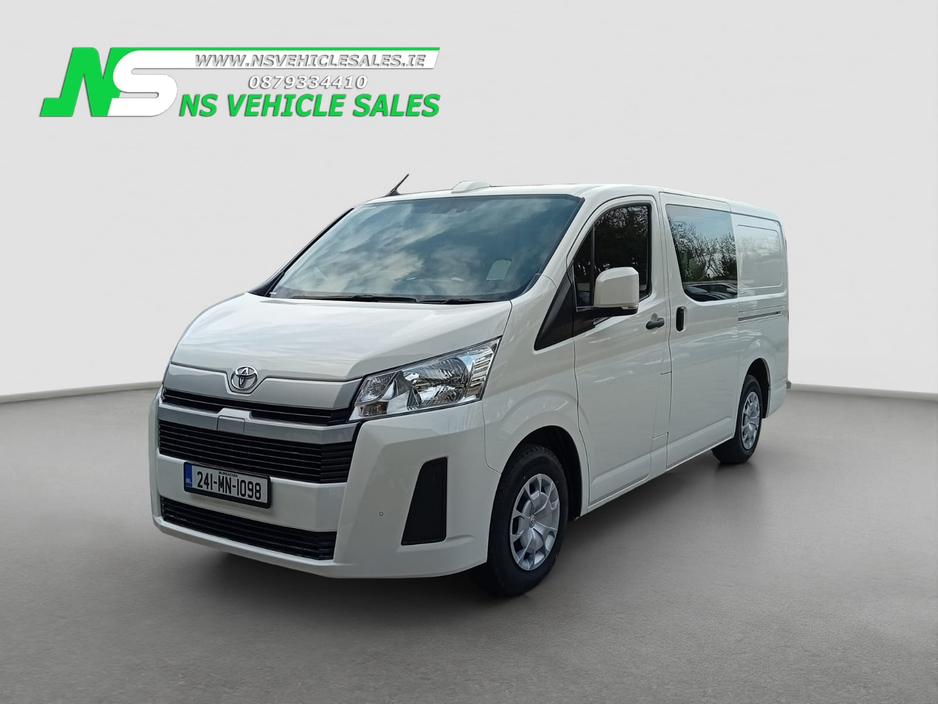 2024 Toyota Hiace for sale. This van has only 11km delivery miles on the clock! Brand new van, plastics still on the keys and the interior. 2.8 diesel, 6 speed automatic gearbox. Dual sliding doors ... . Only van of this model in Ireland. Call 0879334410 Central Locking, Electric Windows, Airbag, Cruise Control, Rear Spoiler, Centre Armrest, Multi-function steering wheel, Roof Rails, Traction Control, Parking Sensors, Bluetooth, Isofix, Apple Car Play, Android Auto, Active Safety Braking / City Brake / Collision Alert, External Devices Connectivity, Cup holders, Stability control, ABS, ABS And ASR, Air Conditioning, Air bags, Alarm, Anti theft system, Aux Socket, Auxiliary Audio Input Jack for iPod etc, Bluetooth, Bluetooth Handsfree Telephone Kit, Bluetooth Phone Prep, Bluetooth Radio/CD, Bluetooth/Tel, Body Coloured Bumpers and Mirrors, Bulkhead (full), Central locking, Day Time Driving Lights, Disc brakes, Door - LHSD, Door - RHSD, Door - Twin side door, Driver Airbag, Electric mirrors, Electric windows, Immobiliser, Jack, Multi Function Steering Wheel, Multi Function Steering Wheel Controls, Parking Sensors, Power steering, Radio/USB/AUX, Rear Loading Doors, Rear Parking Sensors, Remote Central Locking, Remote Control Central Locking, Side Loading Door, Spare Key, Spare keys, TWIN Sliding Side Loading Doors, Towbar, Warranty