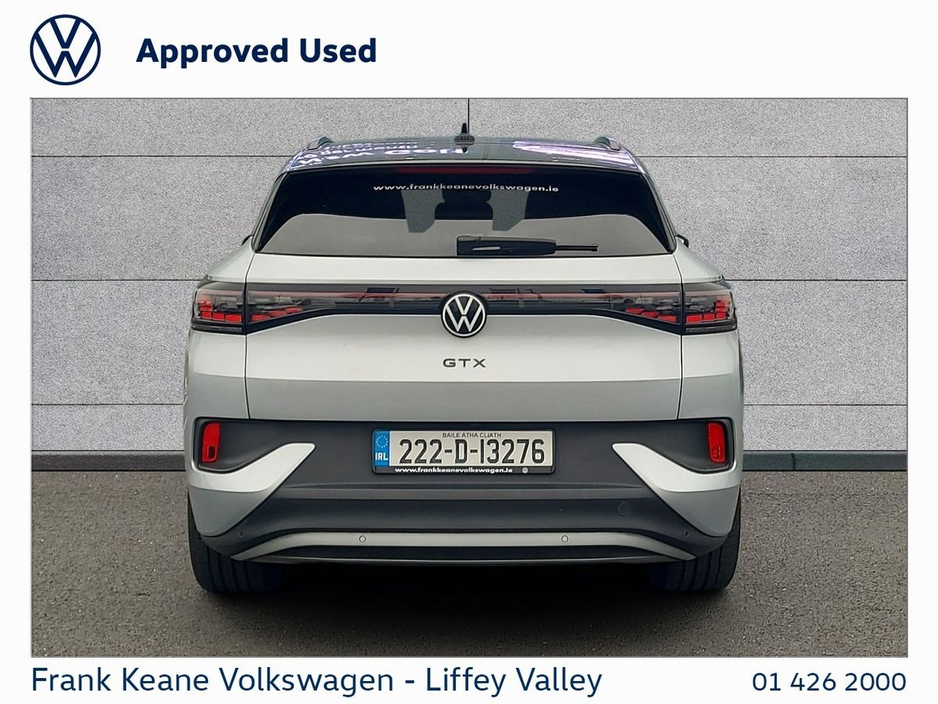 Certified Approved Battery ID.4 at Frank Keane Volkswagen Liffey Valley, We have this 2022 Volkswagen ID4 GTX 77KWH with just 50,476km. Finished in Scale Sil ...
