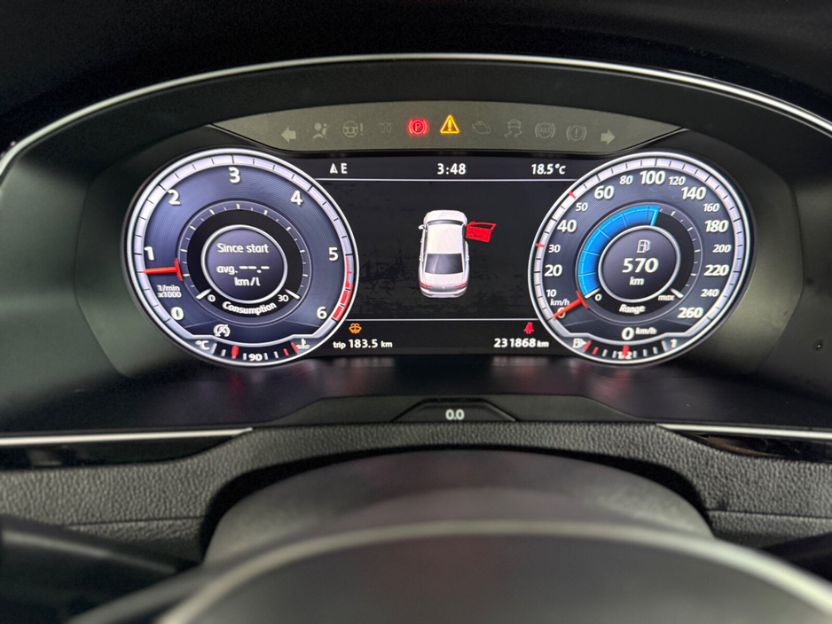 Air conditioning, Climate control, Dual zone climate control, Multi zone climate control, Armrest, Keyless entry, Electrically adjustable seats, Electric side mirrors, Electric windows, Electric handbrake, Heated seats, Lumbar support, Multi-function steering wheel, Rain sensor, Spare tyre, Android Auto, Apple CarPlay, Bluetooth, CD, 12v power outlet, Radio, Touch screen display, USB connection (front), Wifi, Adaptive cruise control, Cruise control, Hill hold assist, Navigation system, Front parking sensors, Rear parking sensors, Remote boot release, Start-stop system, Voice control, Alloy wheels, Leather steering wheel, Tinted windows, Auto lights (dusk sensor), Daytime running lights, LED headlights, ABS, Anti collision system, Emergency brake assist, Central locking, Remote central locking, Driver-side airbag, Immobilizer, Isofix, Tyre pressure monitor, Passenger-side airbag, Seat belt warning, Side airbag, Stability control, Traction control