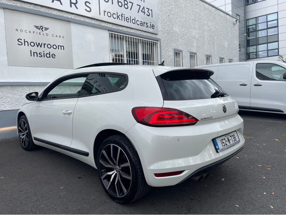 VOLKSWAGEN SCIROCCO - 2.0 DIESEL - SPORT MODEL - AUTOMATIC - NEW NCT - SUNROOF - WHITE EXTERIOR WITH CONTRASTING BLACK AND LIGHT GREY LEATHER INTERIOR - LUMBAR SUPPORT - HEATED SEATS - PARK ASSIST - L ... EATHER MULTI FUNCTIONAL STEERING WHEEL - AIR CONDITIONING - CD PLAYER - ALL ELECTRIC WINDOWS AND MIRRORS - LOTS MORE EXTRAS - ISOFIX - REMOTE CENTRAL LOCKING - MULTIPLE AIR BAGS - WARRANTY PROVIDED - WWW. ROCKFIELDCARS. IE - IF YOU REQUIRE ANY FURTHER INFORMATION RELATING TO THIS VEHICLE OR TO ARRANGE A TEST DRIVE PHONE RICHARD ON 087-2888503 OR ON 01-6877431 Central Locking, Electric Windows, Airbag, Cruise Control, Fog Lamps, Privacy Glass, Centre Armrest, Multi-function steering wheel, Traction Control, Parking Sensors, Bluetooth, EBD, Isofix, Keyless Entry, Active Safety Braking / City Brake / Collision Alert, Stop/Start Button, External Devices Connectivity, Cup holders, Remote boot/hatch/rear door release, Stability control