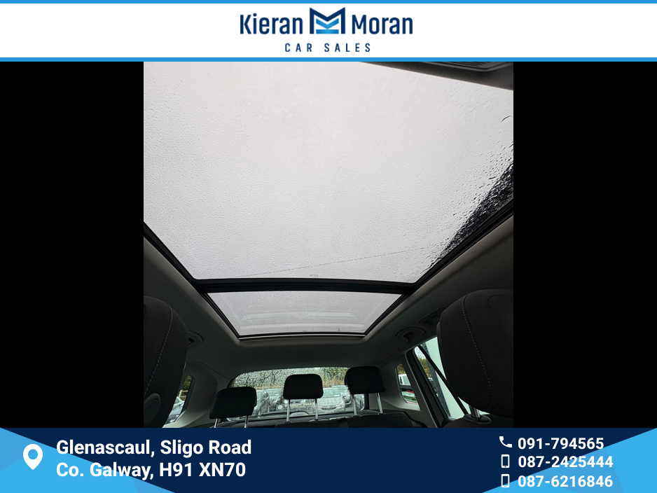 For more information and all our stock visit www.kieranmorancars.ie Central Locking, Electric Windows, Airbag, Fog Lamps, Privacy Glass, Centre Armrest, Multi-function steering wheel, Roof Rails, Satellite Navigation, Traction Control, Metallic Paint, Parking Sensors, 3 Month Warranty, Bluetooth, EBD, Isofix, Active Safety Braking / City Brake / Collision Alert, Stop/Start Button, External Devices Connectivity, Cup holders, Remote boot/hatch/rear door release, Stability control