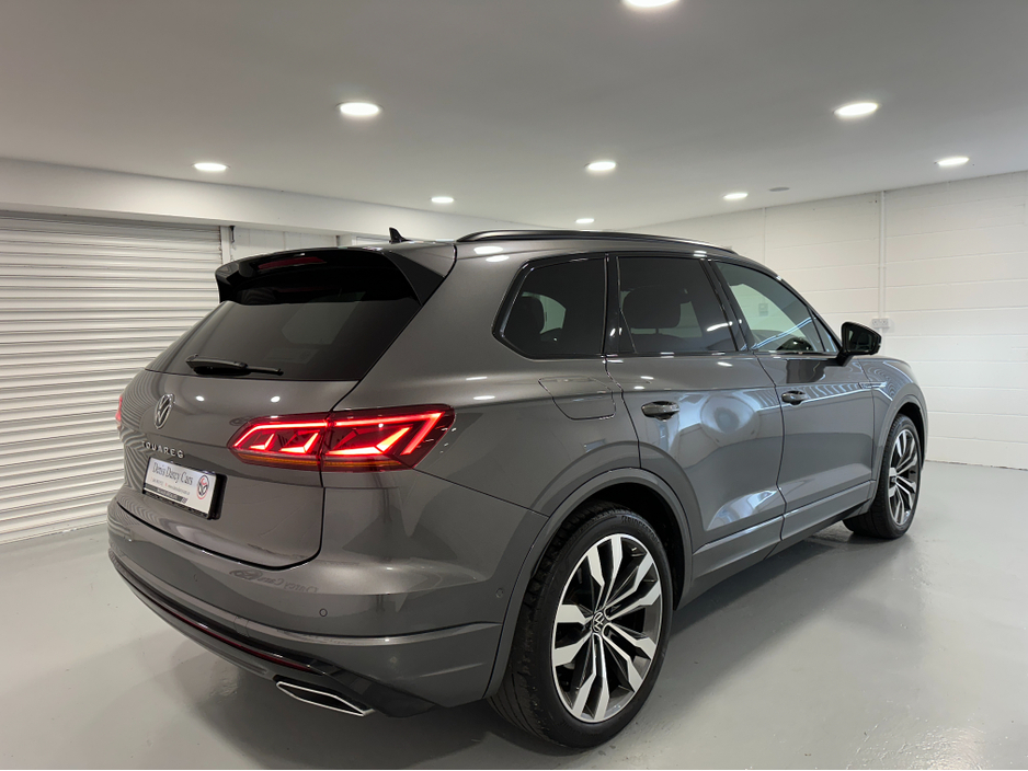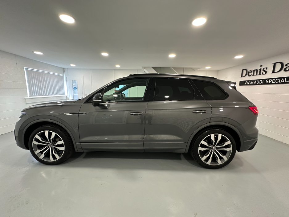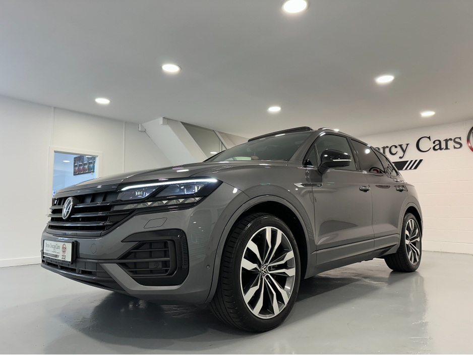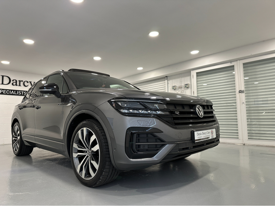 WWW.DENISDARCYCARS.IE VW/AUDI SPECIALISTS. 232 VW TOUAREG 3.0TDI R LINE BLACK EDITION 286BHP AUTO IN SILICONE GREY. SPEC INCLUDES, 21'' ALLOYS, PANORAMIC SUNROOF, AUTO TAILGATE, PRIVACY GLASS, LED LIG ... HTS, MATRIX IQ LIGHTS, MULTIFUNCTION LEATHER HEATED STEERING WHEEL, APPLE CARPLAY, ANDROID AUTO, MIRROR LINK, HEATED LEATHER SEATS, SAT NAV, BLUETOOTH, 360 DEGREE CAMERA SYSTEM, VIRTUAL COCKPIT, ELECTRIC MEMORY SEATS, ARMREST, AMBIENT INTERIOR LIGHTING, AIR SUSPENSION, 4 ZONE AC, KEYLESS, AUTO HOLD, PARKING SENSORS, JEEP IS IN IMACULATE CONDITION. WE ARE LOCATED JUST OFF THE M3 MOTORWAY EXIT 9, 20 MINS FROM DUBLIN. Central Locking, Electric Windows, Airbag, Cruise Control, Sunroof, Rear Spoiler, Privacy Glass, Centre Armrest, Multi-function steering wheel, Roof Rails, Satellite Navigation, Traction Control, Anti-Theft System, Parking Sensors, Bluetooth, Isofix, Panoramic Sunroof, Active Safety Braking / City Brake / Collision Alert, Stop/Start Button, Touch Screen Media Control, External Devices Connectivity, Cup holders, Remote boot/hatch/rear door release, Stability control