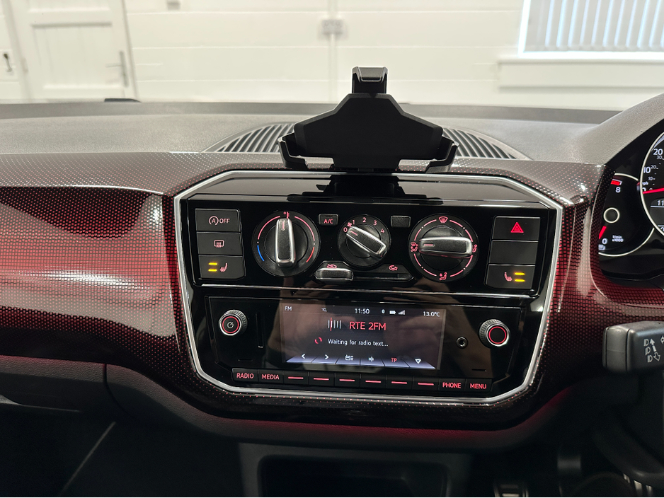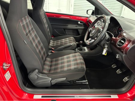 WWW.DENISDARCYCARS.IE VW/AUDI SPECIALISTS. 191 VW UP GTI 3 DOOR MANUAL IN TORNADO RED. SPEC INCLUDES, GTI ALLOYS, FOG LIGHTS, GTI GRILL, BLACK ROOF, PRIVACY GLASS, GTI TARTAN SEATS, MUTIFUNCTION LEAT ... HER STEERING WHEEL WITH GTI BADGE AND RED STITCHING, HEATED SEATS, AIRCON, REAR SPOILER, BLACK MIRRORS, UPGRADED EXHAUST, TWO KEYS, BLACK SIDE DECALS, BLACK ROOF LINING, AMBIENT INTERIOR LIGHTING (CHOICE OF COLOUR) BLUETOOTH. WARRANTY AVAILABLE. WE ARE LOCATED JUST OFF THE M3 MOTORWAY EXIT 9 ,20 MINS FROM DUBLIN. Central Locking, Electric Windows, Airbag, Fog Lamps, Privacy Glass, Multi-function steering wheel, Traction Control, Bluetooth, EBD, Isofix, Keyless Entry, Active Safety Braking / City Brake / Collision Alert, Stop/Start Button, External Devices Connectivity, Cup holders, Stability control