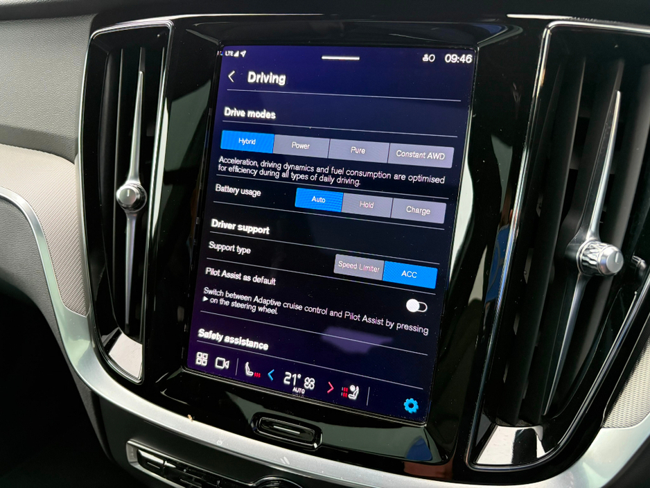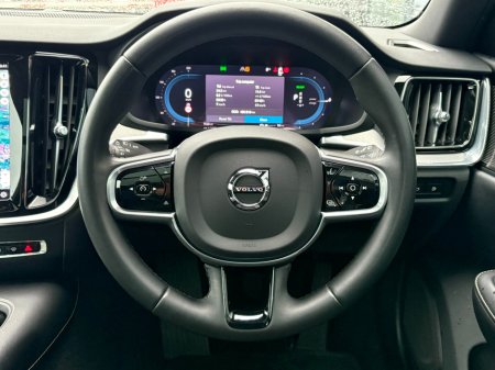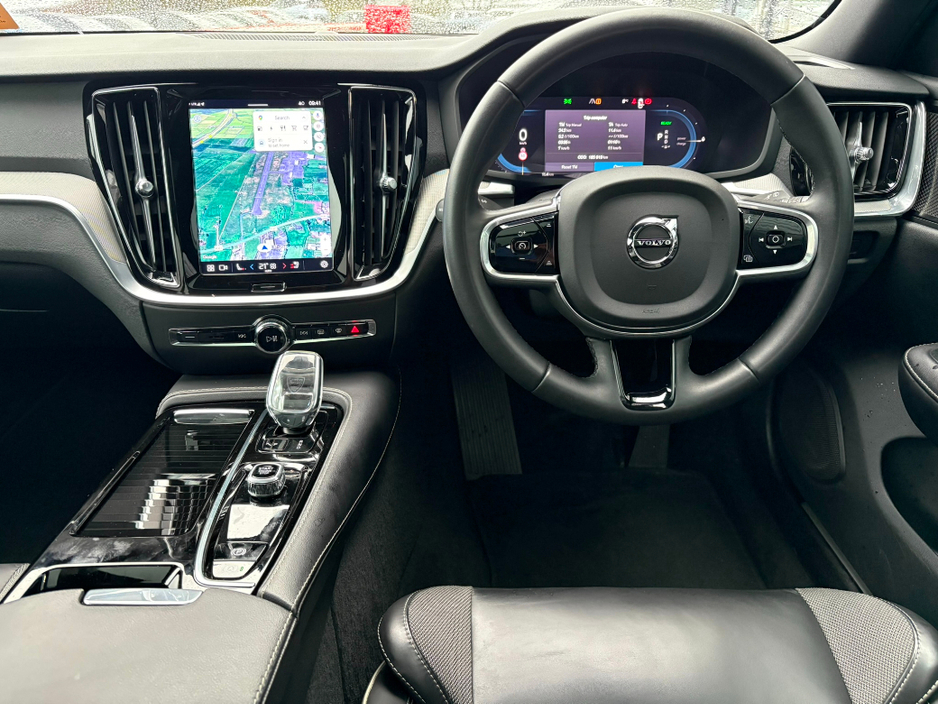 The V60 T6 Recharge AWD is a premium plug-in hybrid estate with a combined 350 bhp and all-wheel drive. It offers a blended driving experience with both a turbocharged engine and an electric motor, resulting in high power output, impressive acceleration, and significant fuel efficiency with an all-electric range of up to 75km (92km WLTP) from its 18.8kWh battery.