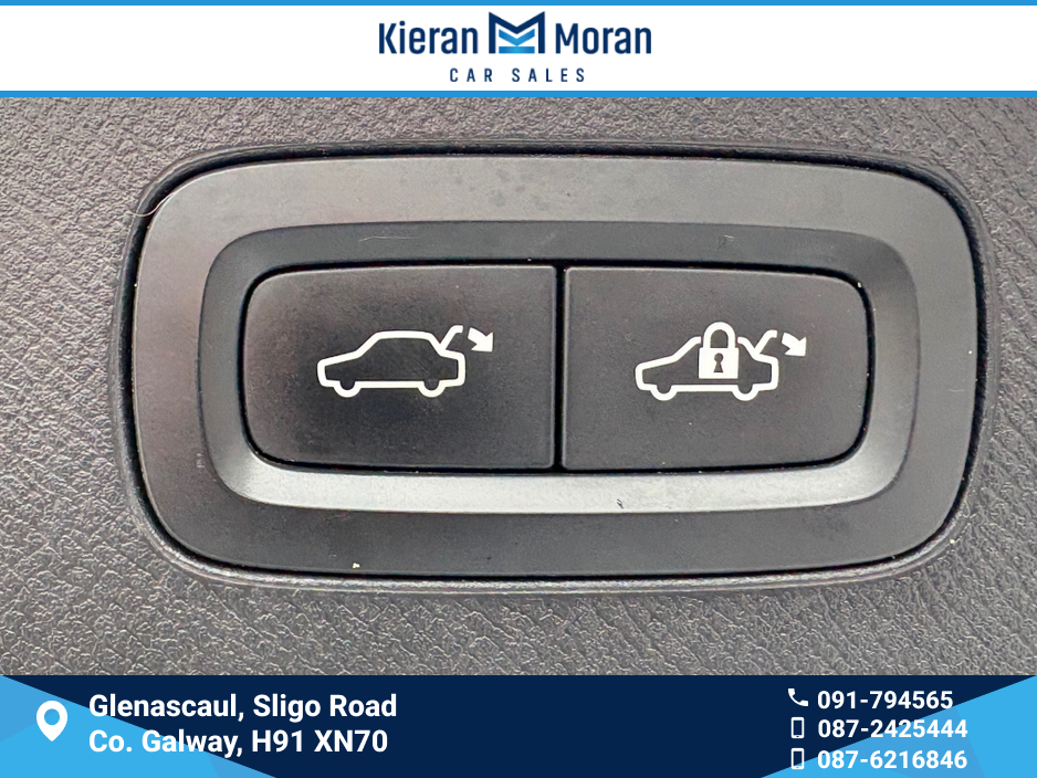 For more information and all our stock visit www.kieranmorancars.ie Central Locking, Electric Windows, Airbag, Cruise Control, Fog Lamps, Rear Spoiler, Centre Armrest, Multi-function steering wheel, Roof Rails, Satellite Navigation, Traction Control, Metallic Paint, Anti-Theft System, Parking Sensors, 3 Month Warranty, Bluetooth, EBD, Isofix, Active Safety Braking / City Brake / Collision Alert, Stop/Start Button, Touch Screen Media Control, External Devices Connectivity, Cup holders, Remote boot/hatch/rear door release, Stability control